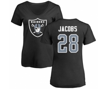 Football Women's Oakland Raiders #28 Josh Jacobs Black Name & Number Logo T-Shirt