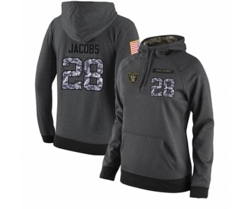 Football Women's Oakland Raiders #28 Josh Jacobs Stitched Black Anthracite Salute to Service Player Performance Hoodie