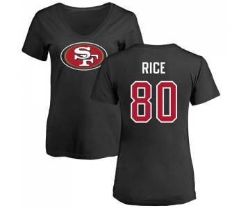 Football Women's San Francisco 49ers #80 Jerry Rice Black Name & Number Logo T-Shirt