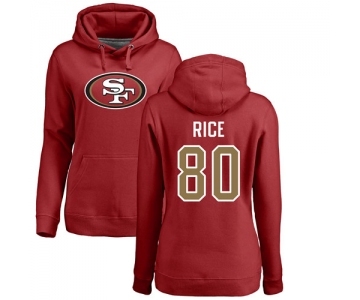 Football Women's San Francisco 49ers #80 Jerry Rice Red Name & Number Logo Pullover Hoodie