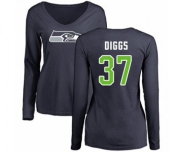 Football Women's Seattle Seahawks #37 Quandre Diggs Navy Blue Name & Number Logo Long Sleeve T-Shirt