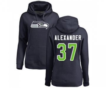 Football Women's Seattle Seahawks #37 Shaun Alexander Navy Blue Name & Number Logo Pullover Hoodie