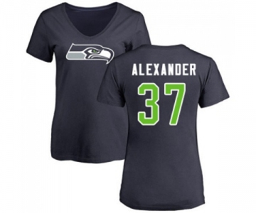 Football Women's Seattle Seahawks #37 Shaun Alexander Navy Blue Name & Number Logo T-Shirt