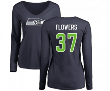 Football Women's Seattle Seahawks #37 Tre Flowers Navy Blue Name & Number Logo Long Sleeve T-Shirt