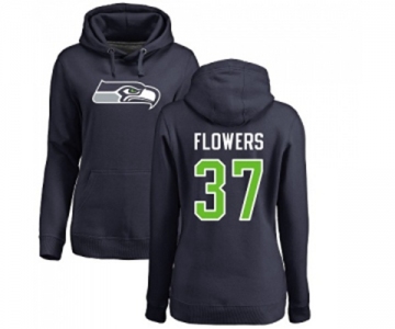 Football Women's Seattle Seahawks #37 Tre Flowers Navy Blue Name & Number Logo Pullover Hoodie