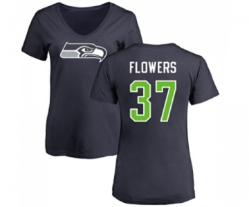 Football Women's Seattle Seahawks #37 Tre Flowers Navy Blue Name & Number Logo T-Shirt
