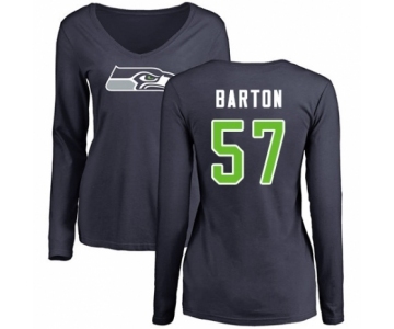 Football Women's Seattle Seahawks #57 Cody Barton Navy Blue Name & Number Logo Long Sleeve T-Shirt