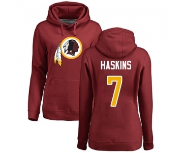 Football Women's Washington Redskins #7 Dwayne Haskins Maroon Name & Number Logo Pullover Hoodie