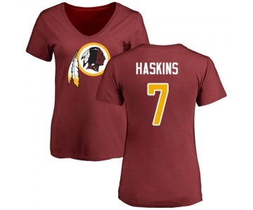Football Women's Washington Redskins #7 Dwayne Haskins Maroon Name & Number Logo T-Shirt