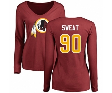 Football Women's Washington Redskins #90 Montez Sweat Maroon Name & Number Logo Long Sleeve T-Shirt