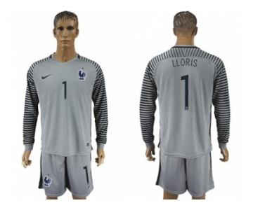 France #1 LLORIS Grey Goalkeeper Long Sleeves Soccer Country Jersey