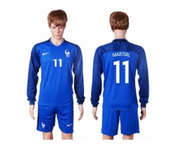 France #11 Martial Home Long Sleeves Soccer Country Jersey