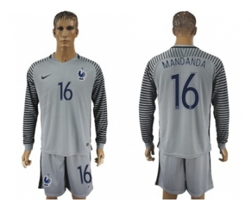 France #16 Mandanda Grey Goalkeeper Long Sleeves Soccer Country Jersey