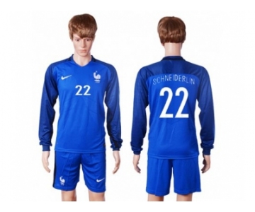 France #22 Schneiderlin Home Long Sleeves Soccer Country Jersey