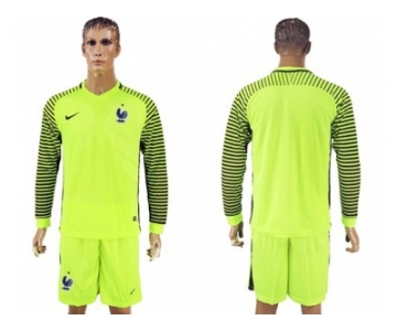 France Blank Green Long Sleeves Goalkeeper Soccer Country Jersey