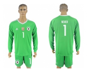 Germany #1 Neuer Green Goalkeeper Long Sleeves Soccer Country Jersey
