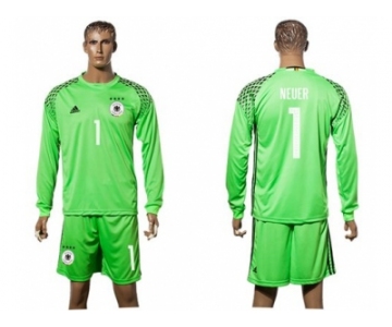 Germany #1 Neuer Green Goalkeeper Long Sleeves Soccer Country Jersey2