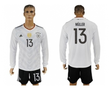 Germany #13 Muller White Home Long Sleeves Soccer Country Jersey