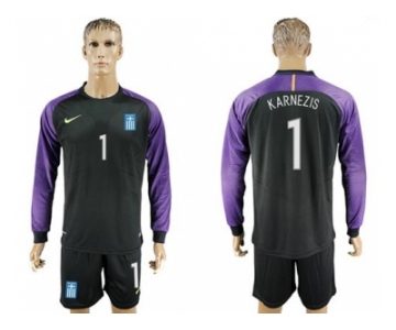 Greece #1 Karnezis Black Goalkeeper Long Sleeves Soccer Country Jersey