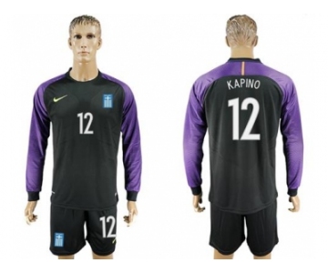 Greece #12 Kapino Black Goalkeeper Long Sleeves Soccer Country Jersey