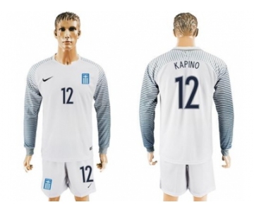 Greece #12 Kapino White Goalkeeper Long Sleeves Soccer Country Jersey