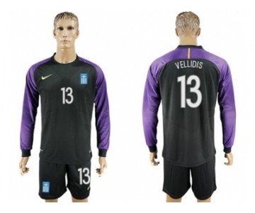 Greece #13 Vellidis Black Goalkeeper Long Sleeves Soccer Country Jersey
