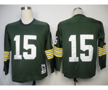 Your Position: Home>NFL M&N Throwback Jerseys>Green Bay Packers>Green Bay Packers #15 Bart Starr Green Long-Sleeved Throwback Jersey