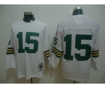 Your Position: Home>NFL M&N Throwback Jerseys>Green Bay Packers>Green Bay Packers #15 Bart Starr White Long-Sleeved Throwback Jersey