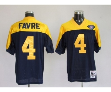 Green Bay Packers #4 Brett Favre Navy Blue With Yellow 75TH Throwback Jersey