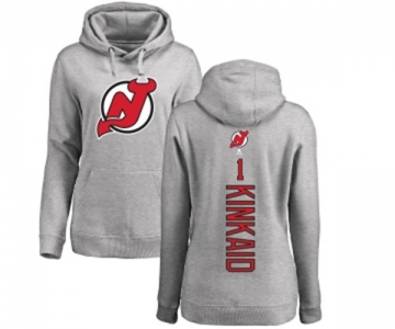 Hockey Women New Jersey Devils #1 Keith Kinkaid Ash Backer Pullover Hoodie