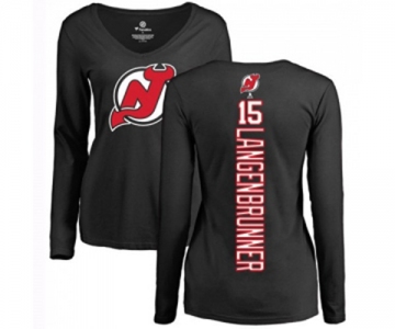Hockey Women New Jersey Devils #15 Jamie Langenbrunner Black Backer Long Sleeve T-Shirt
