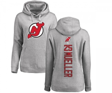 Hockey Women New Jersey Devils #25 Mirco Mueller Ash Backer Pullover Hoodie