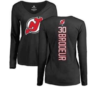 Hockey Women New Jersey Devils #30 Martin Brodeur Black Backer Long Sleeve T-Shirt