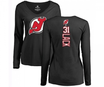 Hockey Women New Jersey Devils #31 Eddie Lack Black Backer Long Sleeve T-Shirt