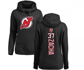 Hockey Women New Jersey Devils #37 Pavel Zacha Black Backer Pullover Hoodie