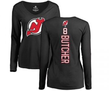 Hockey Women New Jersey Devils #8 Will Butcher Black Backer Long Sleeve T-Shirt
