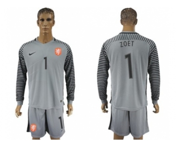 Holland #1 Zoet Grey Goalkeeper Long Sleeves Soccer Country Jersey