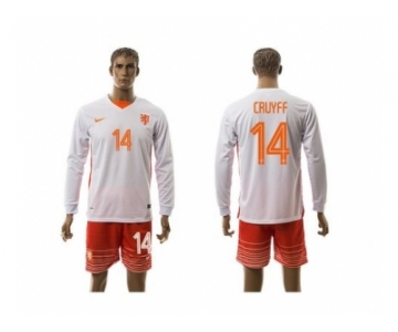 Holland #14 Cruyff Away Long Sleeves Soccer Country Jersey