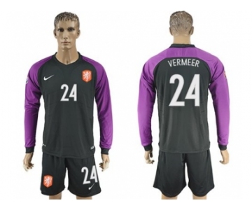 Holland #24 Vermeer Black Goalkeeper Long Sleeves Soccer Country Jersey