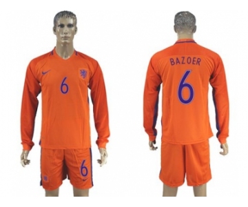 Holland #6 Bazoer Home Long Sleeves Soccer Country Jersey
