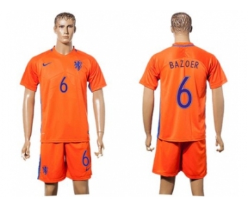 Holland #6 Bazoer Home Soccer Country Jersey