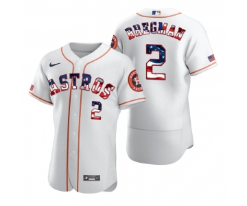Houston Astros #2 Alex Bregman Men's Nike White Fluttering USA Flag Limited Edition Authentic MLB Jersey