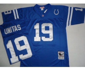 Indianapolis Colts #19 Johnny Unitas Blue Short-Sleeved Throwback Jersey