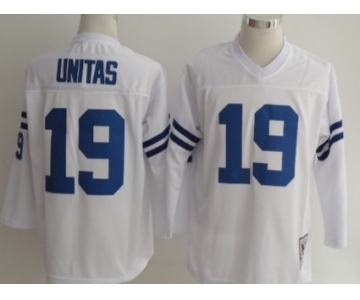 Indianapolis Colts #19 Johnny Unitas White Long-Sleeved Throwback Jersey