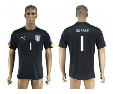 Italy #1 Buffon Black Goalkeeper Soccer Country Jersey