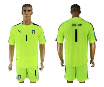 Italy #1 Buffon Shiny Green Goalkeeper Soccer Country Jersey