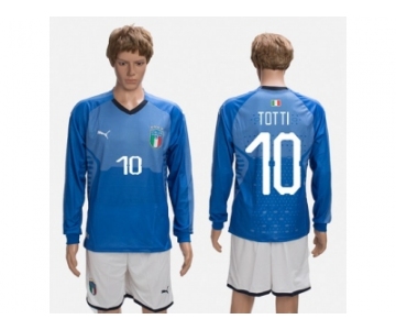 Italy #10 Totti Blue Home Long Sleeves Soccer Country Jersey