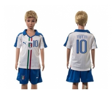 Italy #10 Totti White Away Kid Soccer Country Jersey