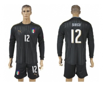 Italy #12 Sirigu Black Long Sleeves Goalkeeper Soccer Country Jersey