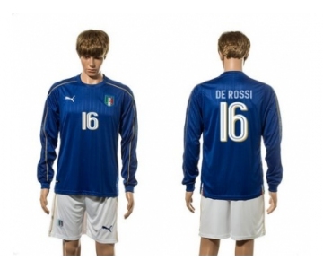Italy #16 De Rossi Blue Home Long Sleeves Soccer Country Jersey